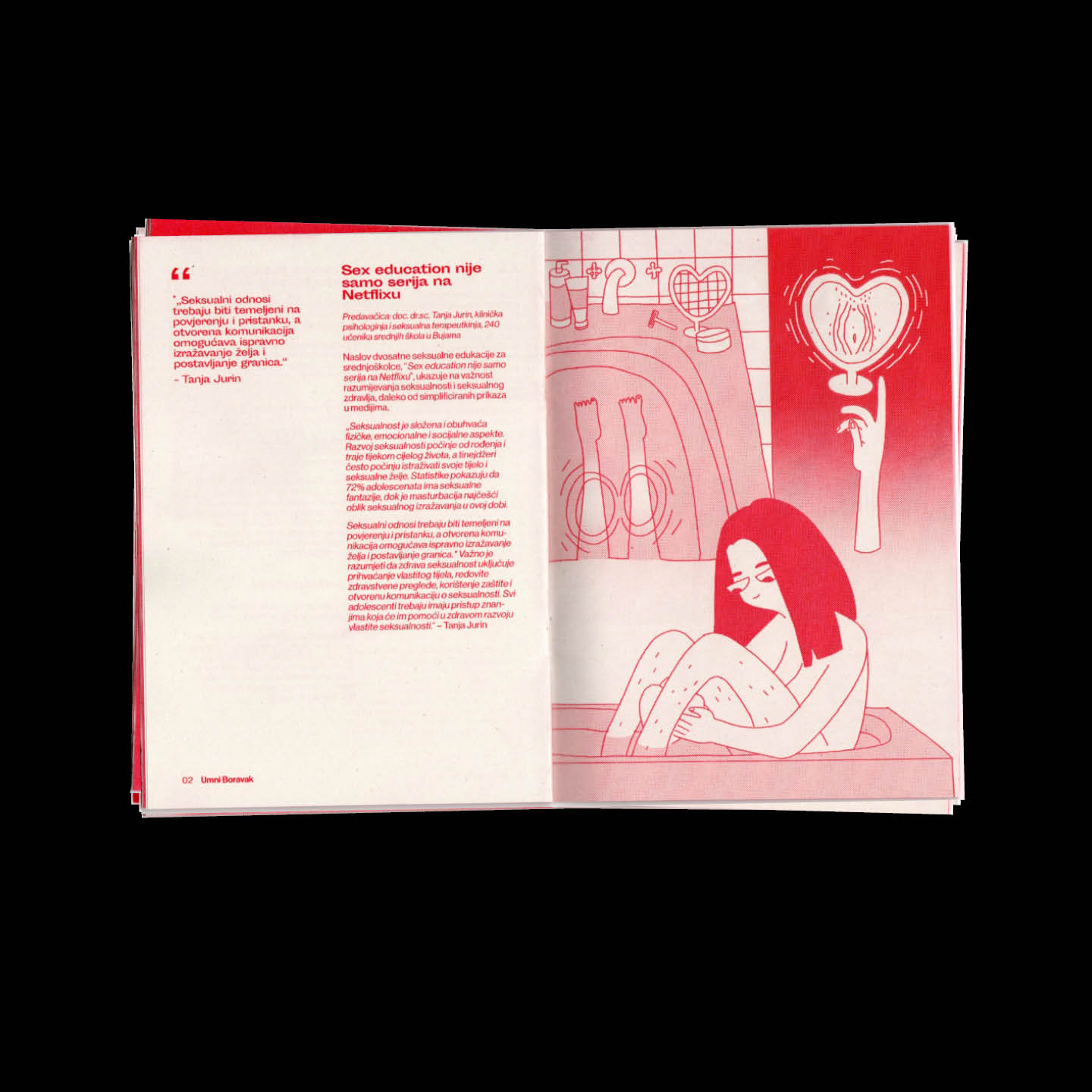 Umni Boravak is an initiative dedicated to raising awareness and breaking taboos surrounding mental health. The zine “Za one otvorenog uma” (“For Those of Open Minds) addresses mental health topics, specifically targeting young people, in an accessible and creative way.